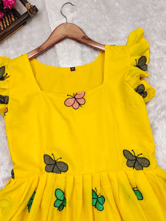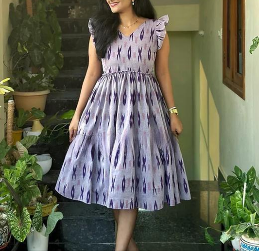 "Elegant Cotton Kurti with Ikkat Print & Frill Hem"