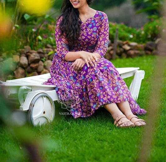 "Traditional Hakuba Muslin Anarkali With Kalamkari Print -
