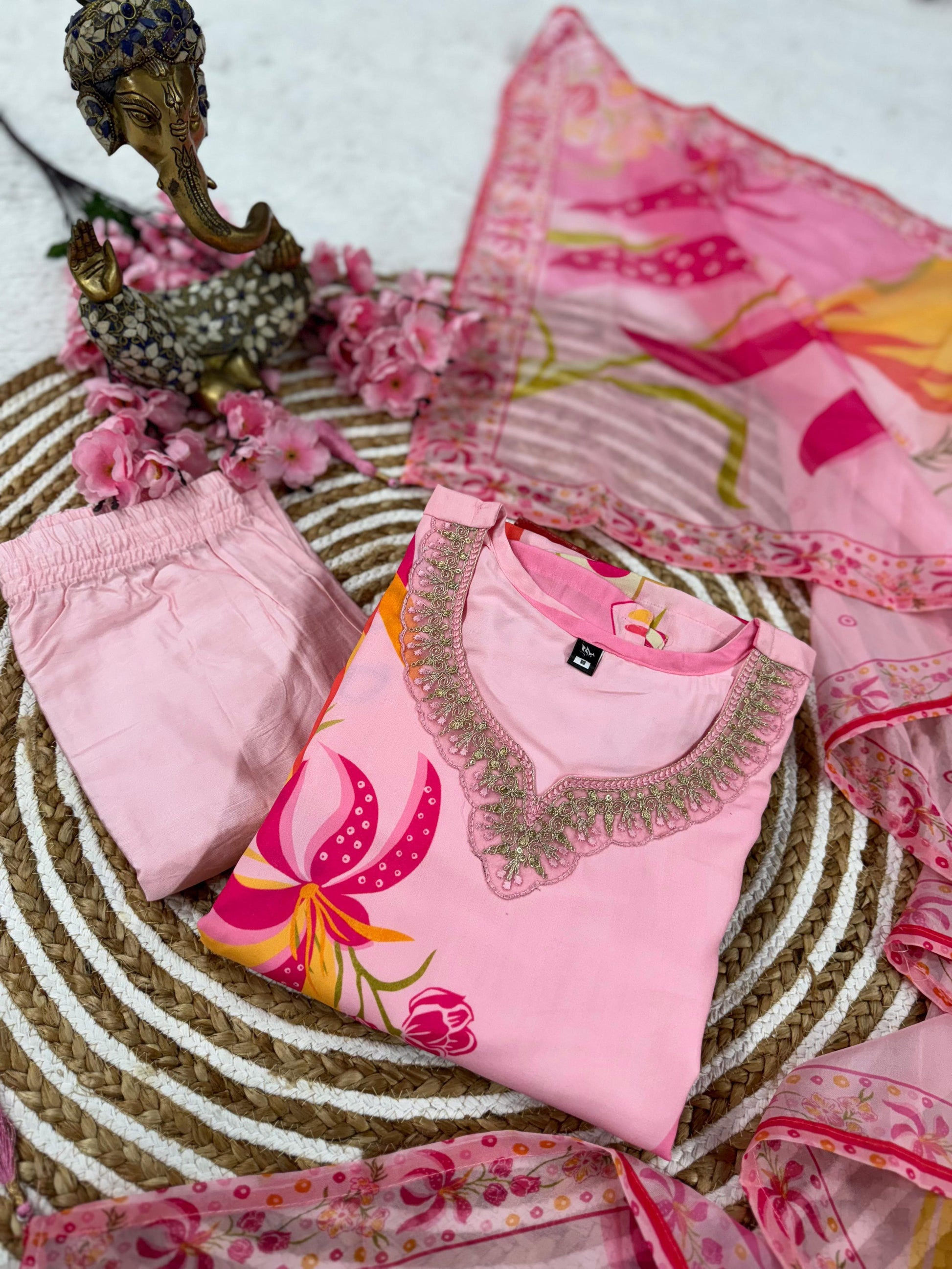 Elegant Viscose Kurti Pant Dupatta Set - Organza Dupatta