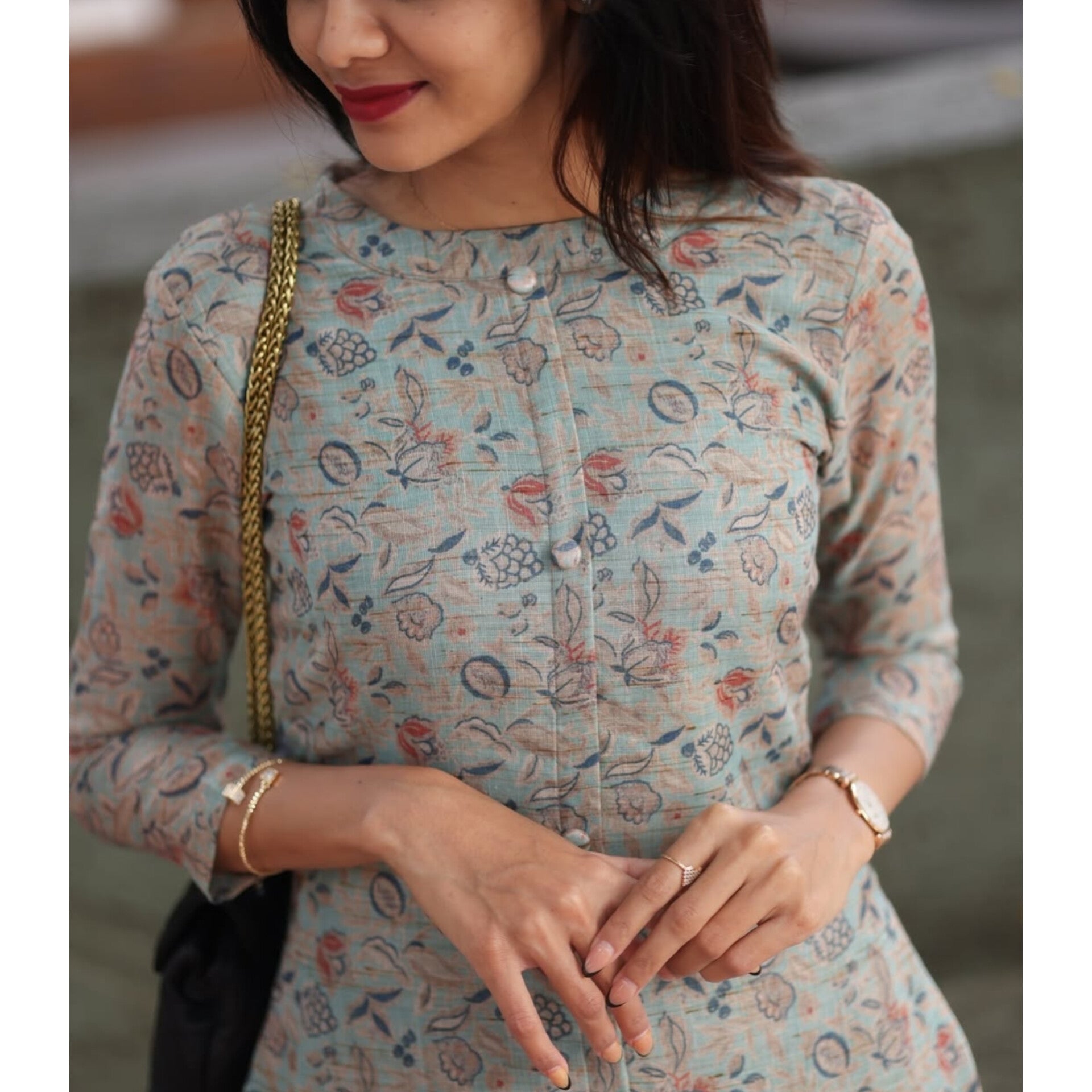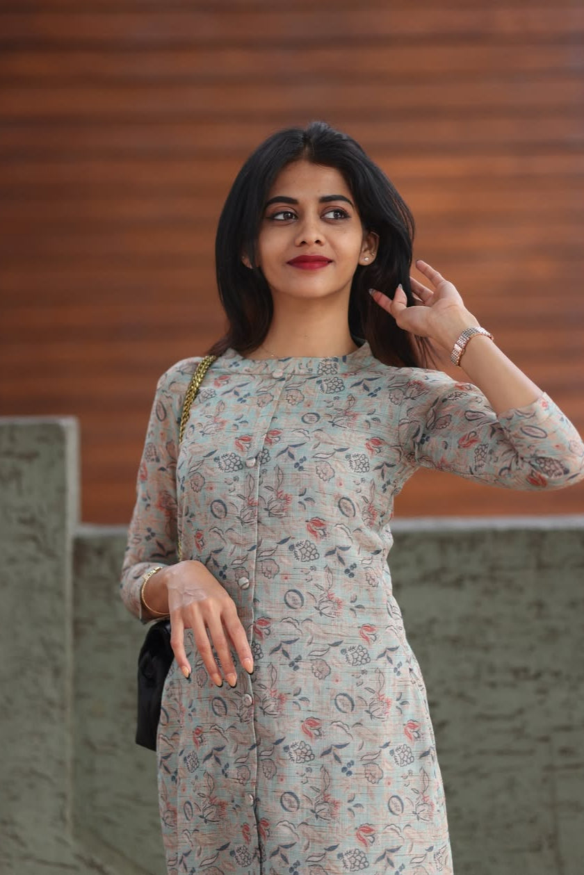 Featuring a graceful print pattern and enhanced with premium stitching finish, this outfit gives you a classy yet effortless look. Perfect for casual outings, office wear, brunch dates, or festive gatherings.